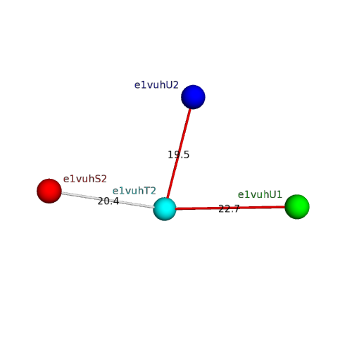 Structural contacts of domain e1vuhT2 of H-group "Retrovirus capsid protein N-terminal domain":