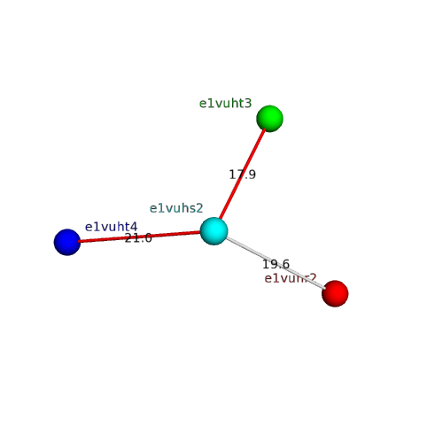 Structural contacts of domain e1vuhs2 of H-group "Retrovirus capsid protein N-terminal domain":