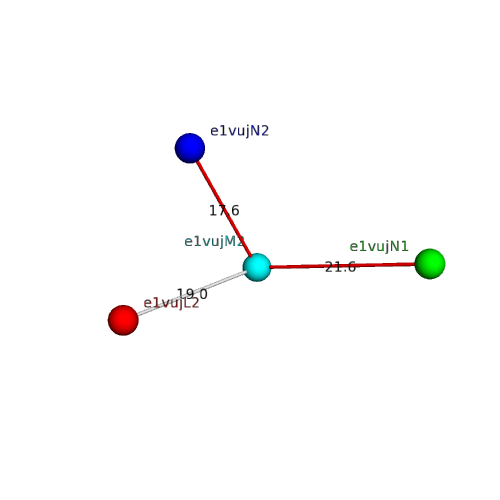 Structural contacts of domain e1vujM2 of H-group "Retrovirus capsid protein N-terminal domain":