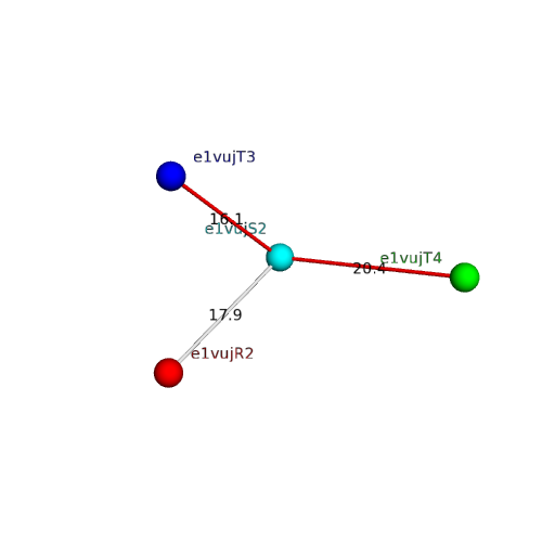 Structural contacts of domain e1vujS2 of H-group "Retrovirus capsid protein N-terminal domain":