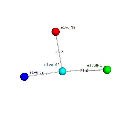 Structural contacts of domain e1vulM2 of H-group "Retrovirus capsid protein N-terminal domain":