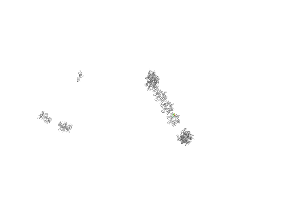 The domain and its neighboring domains (both within the asymmetric unit and to crystallographic symmetry mates) are represented by spheres and linked by lines. Distances between the center of the domain and interfaces are shown for each contact.