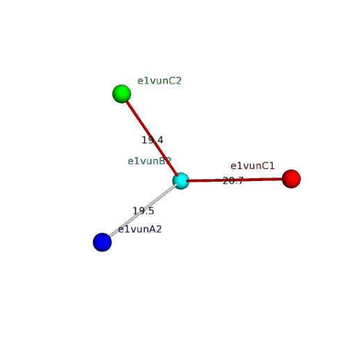 Structural contacts of domain e1vunB2 of H-group "Retrovirus capsid protein N-terminal domain":
