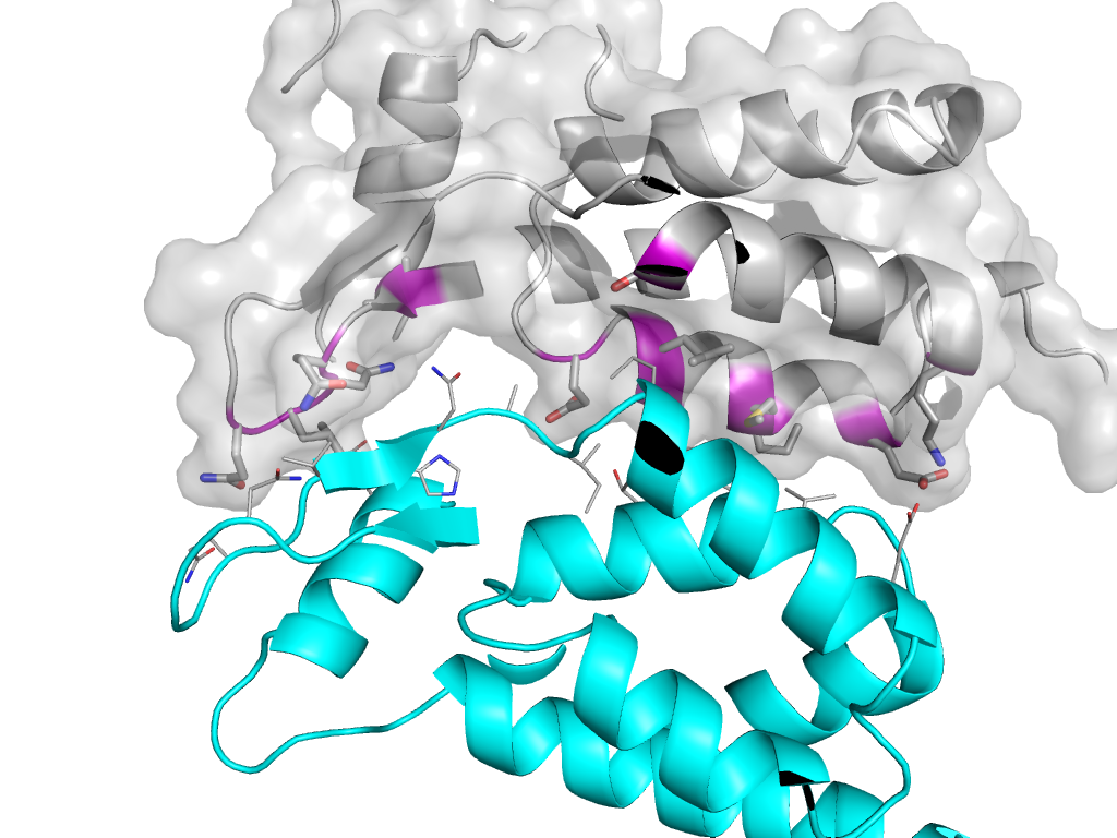 e1vunl1 r:x,y,z->l:X,Y,Z Retrovirus capsid protein-C Interaction Interface Pymol