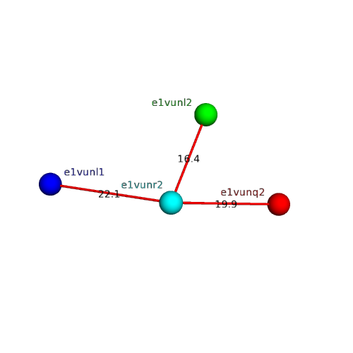 Structural contacts of domain e1vunr2 of H-group "Retrovirus capsid protein N-terminal domain":
