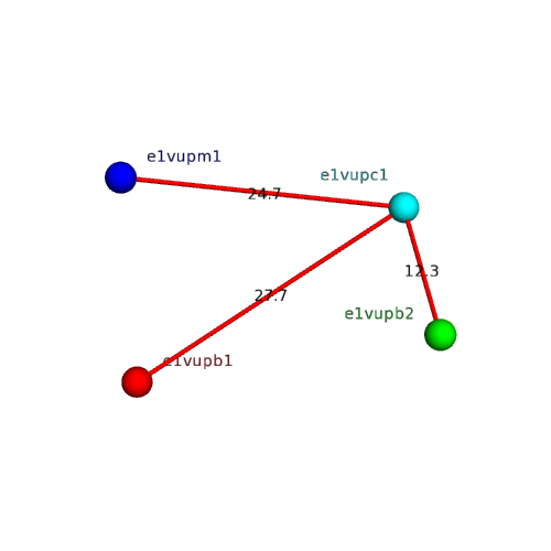 Structural contacts of domain e1vupc1 of H-group "Retrovirus capsid protein-C":