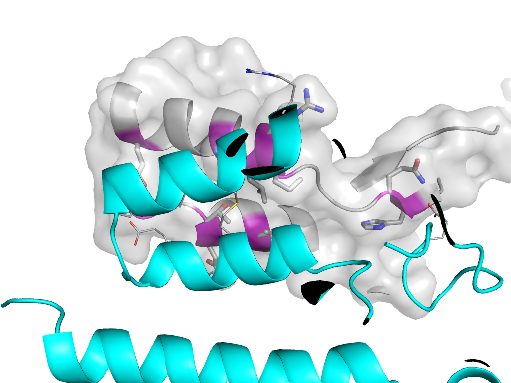 e1vuvF3 A:x,y,z->F:X,Y,Z Retrovirus capsid protein N-terminal domain Interaction Interface Pymol