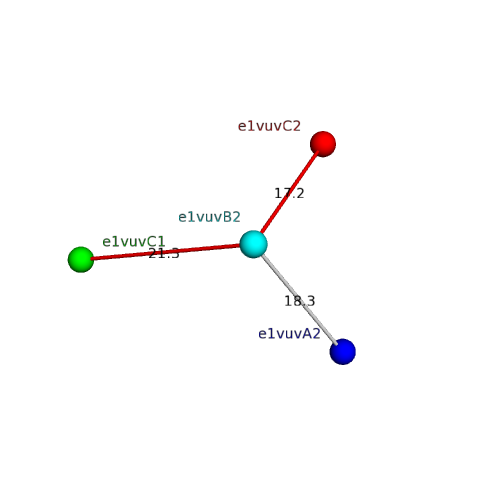 Structural contacts of domain e1vuvB2 of H-group "Retrovirus capsid protein N-terminal domain":