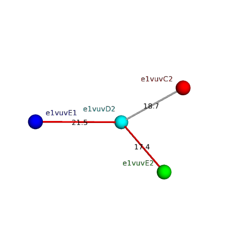 Structural contacts of domain e1vuvD2 of H-group "Retrovirus capsid protein N-terminal domain":