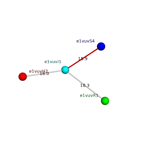 Structural contacts of domain e1vuvI1 of H-group "Retrovirus capsid protein-C":