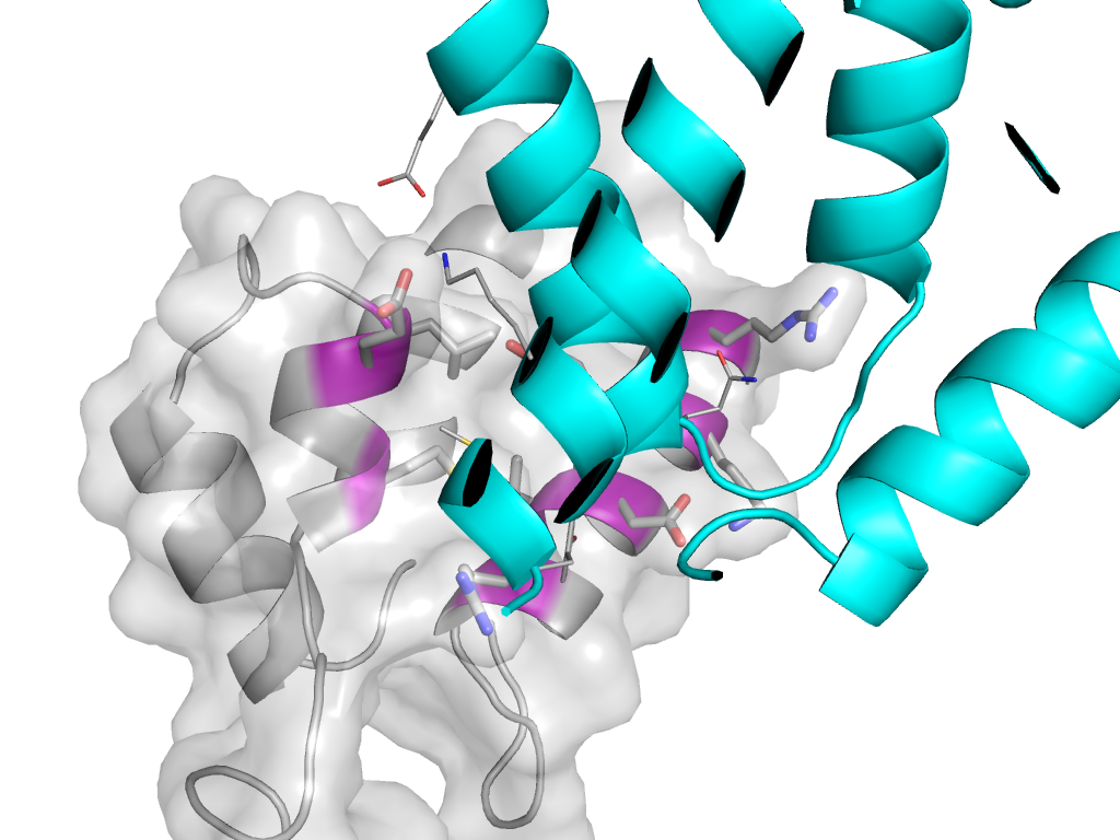 e1vuvs2 t:X,Y,Z->s:x,y,z Retrovirus capsid protein N-terminal domain Interaction Interface Pymol
