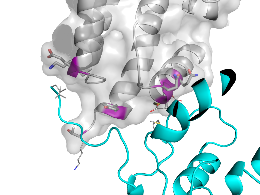e1vuvj1 t:X,Y,Z->j:x,y,z Retrovirus capsid protein-C Interaction Interface Pymol