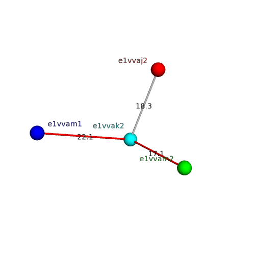 Structural contacts of domain e1vvak2 of H-group "Retrovirus capsid protein N-terminal domain":