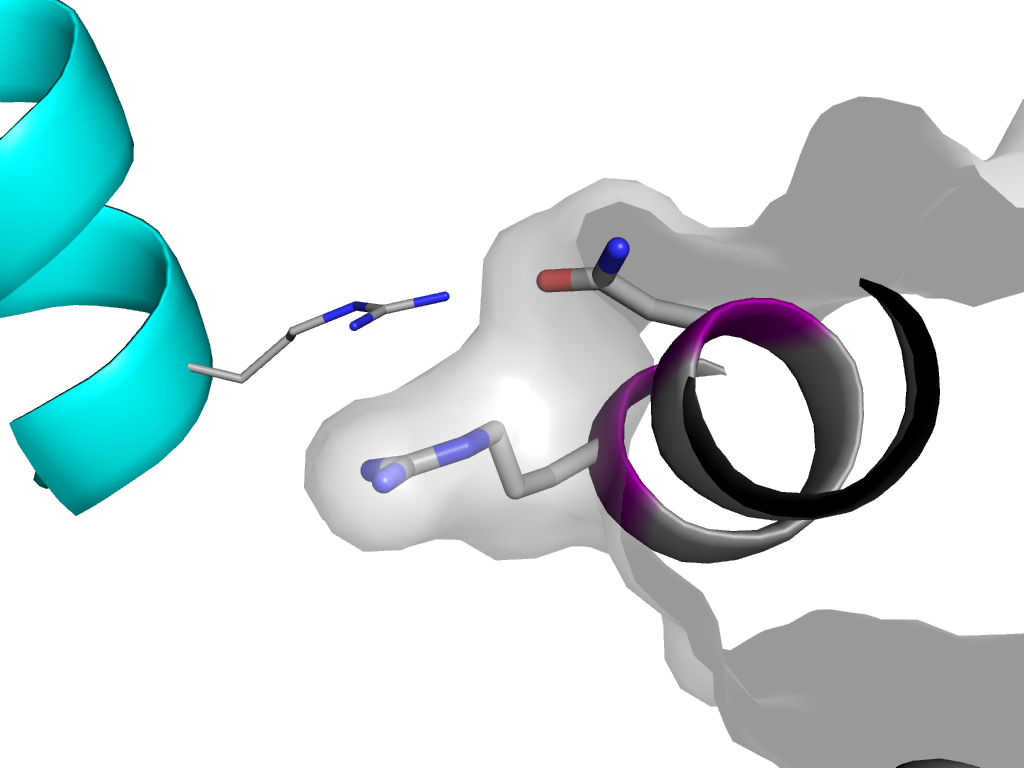 e1vviH2 K:X,Y,Z->H:x,y,z Retrovirus capsid protein N-terminal domain Interaction Interface Pymol