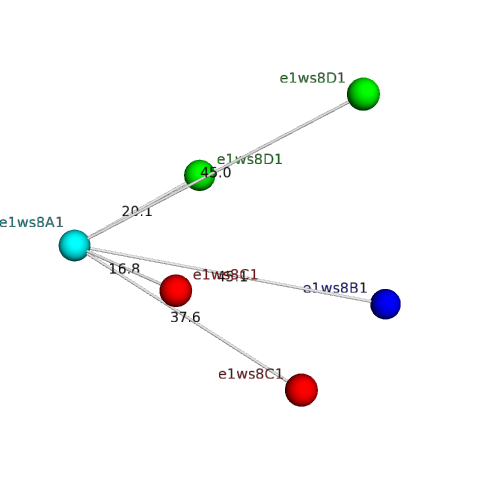 Structural contacts of domain e1ws8A1 of H-group "Cupredoxin-related":