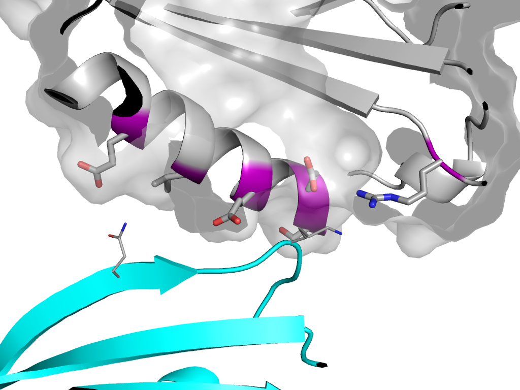 e2c37T1 S:X,Y,Z->T:x,y,z Ribonuclease PH domain 2 Interaction Interface Pymol