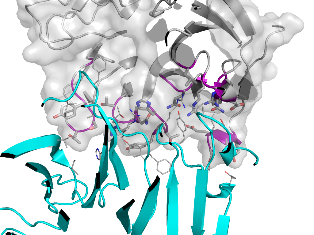 | e2dg0J1 | C:x,y,z->J:-X+1,Y-1/2,-Z+1 | beta-propeller | Interaction Interface Pymol |