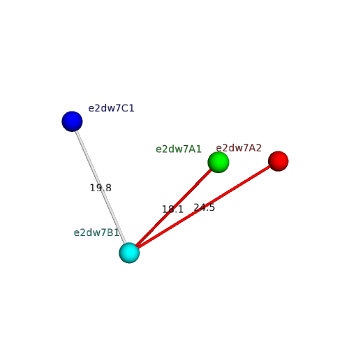 Structural contacts of domain e2dw7B1 of H-group "Enolase N-terminal domain-like":