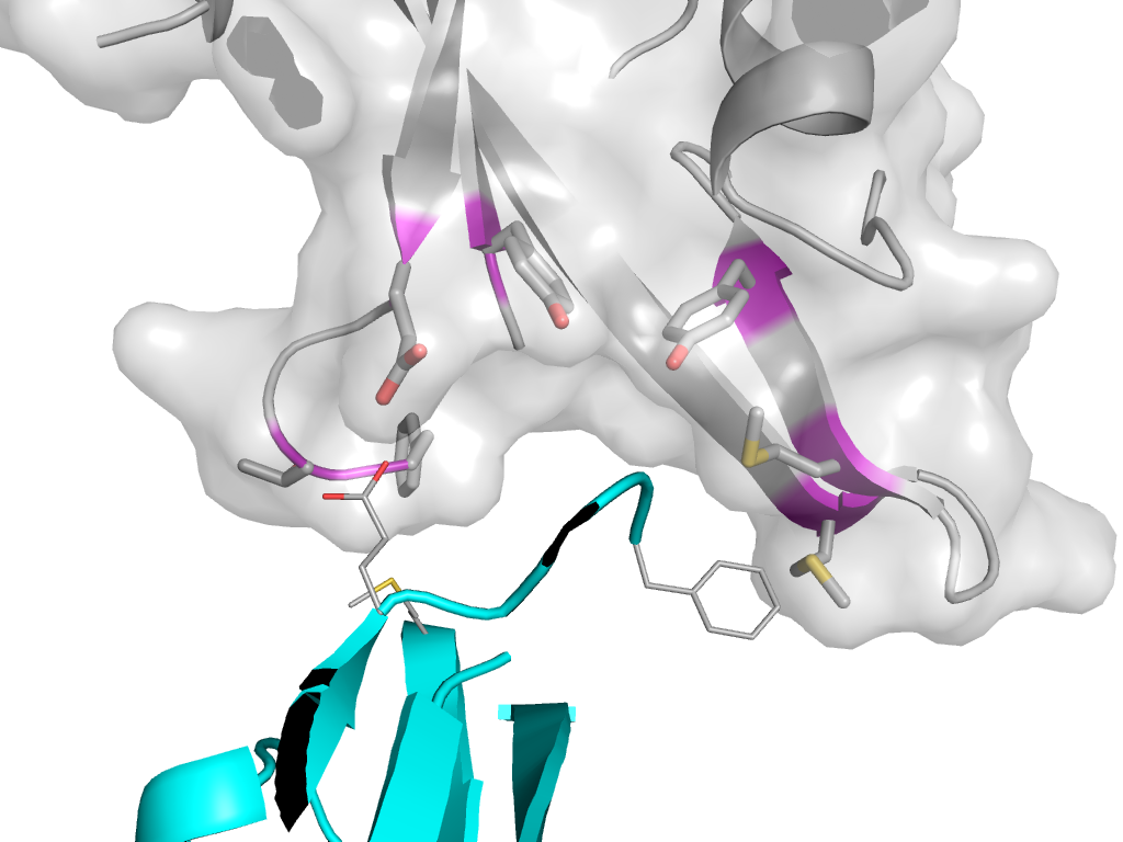 | e2dx0B1 | B:x,y,z->B:Y,X,-Z+1 | SH2 | Interaction Interface Pymol |