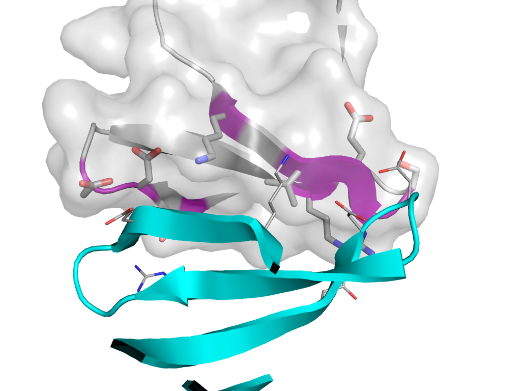 | e2e41A1 | B:x,y,z->A:X-1,Y+1,Z | SH3 | Interaction Interface Pymol |
