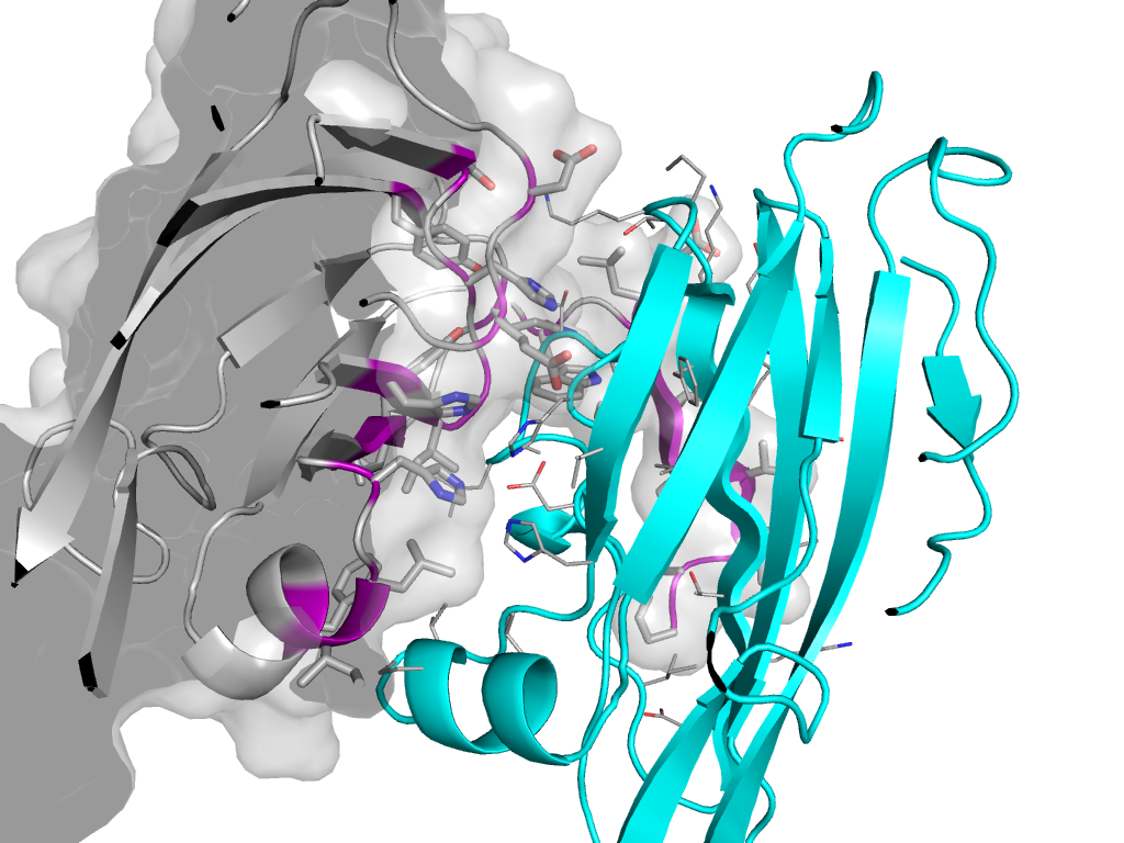 | e2e86B1 | A:x,y,z->B:X-1/2,-Y+1/2,-Z+1 | Cupredoxin-related | Interaction Interface Pymol |