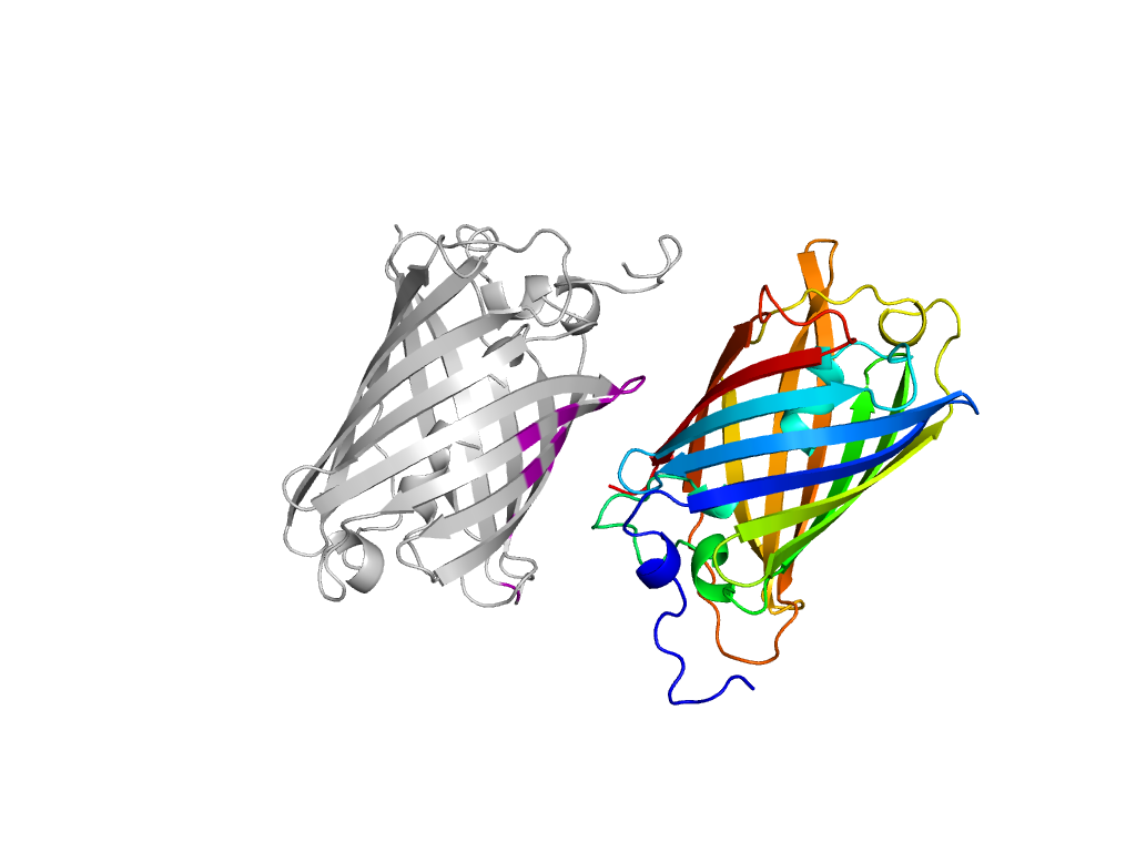 | e2h6vA1 | A:X-1/2,-Y+1/2,-Z+1->A:x,y,z | GFP-like | Interaction Interface Pymol |