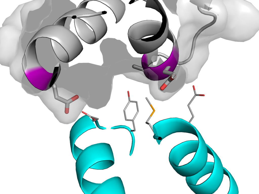 | e2hyfC1 | D:x,y,z->C:-X+1,Y-1/2,-Z+1/2 | HTH | Interaction Interface Pymol |