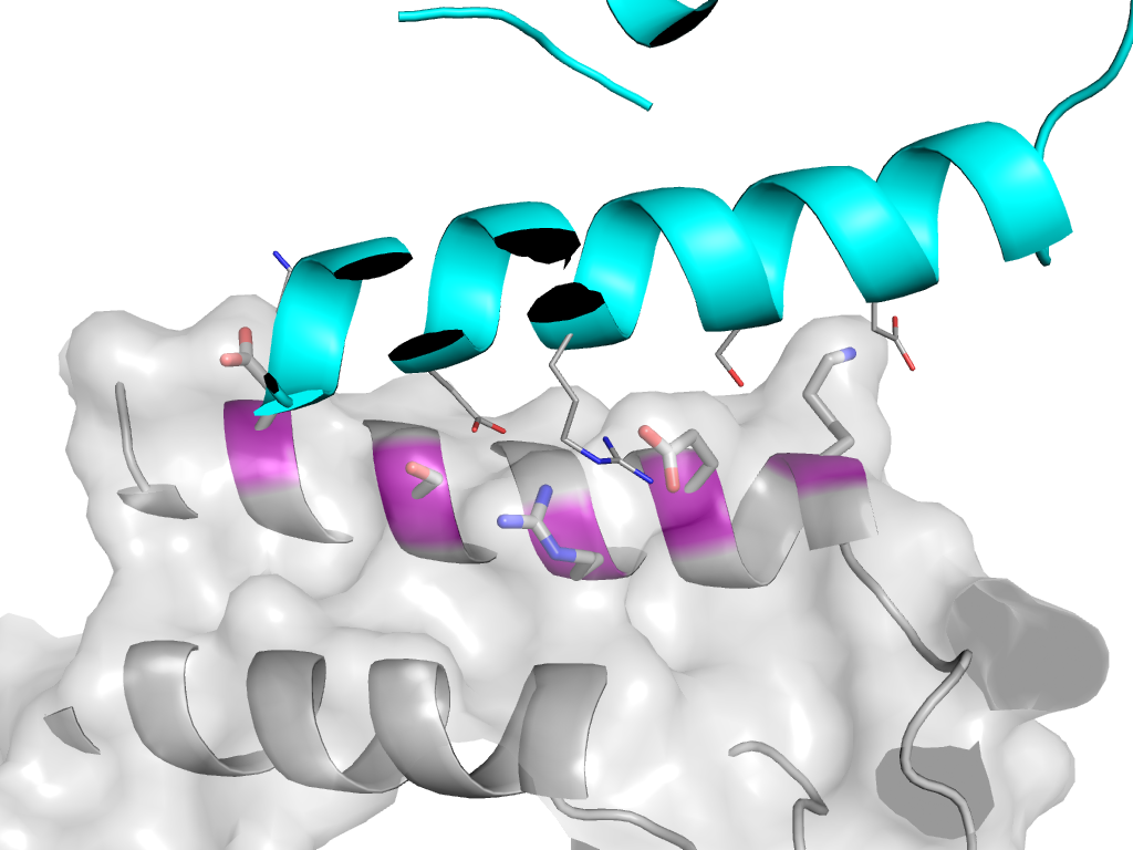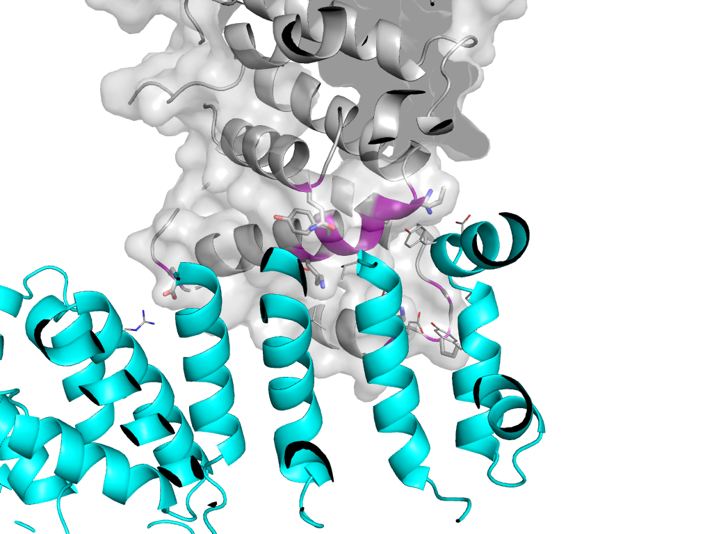 | e2jakA1 | A:x,y,z->A:X-Y+1,-Y+2,-Z+2/3 | ARM repeat | Interaction Interface Pymol |