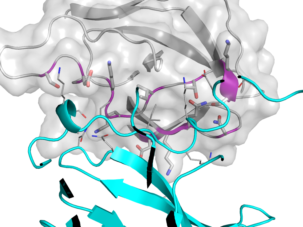 | e2qzwB2 | A:x,y,z->B:X-1/2,Y-1/2,Z | RIFT-related | Interaction Interface Pymol |