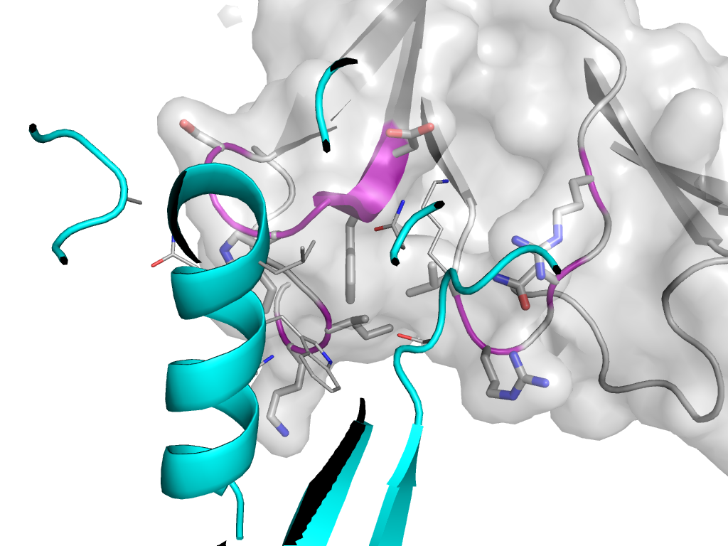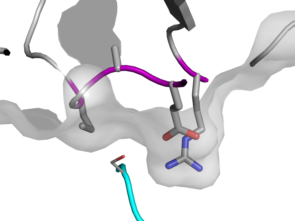 | e2y6tH1 | C:X,Y,Z->H:x,y,z | Ecotin, trypsin inhibitor | Interaction Interface Pymol |