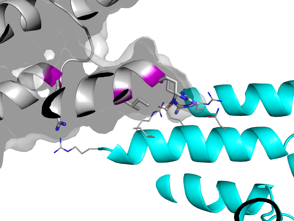 e2ymnC6 D:X,Y,Z->C:x,y,z Helical bundle in flu nucleocapsid protein Interaction Interface Pymol