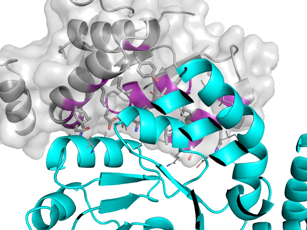 | e3a5fA1 | B:-X-1/2,Y-1/2,-Z->A:x,y,z | TIM barrels | Interaction Interface Pymol |