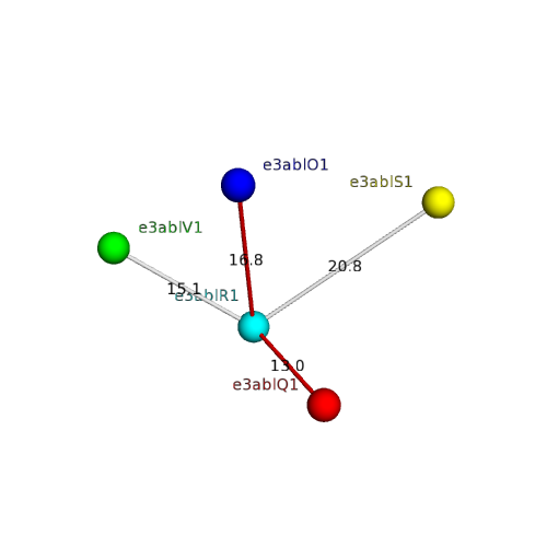 e3ablQ1 R:x,y,z->Q:X,Y,Z Mitochondrial cytochrome c oxidase subunit IV Interaction Interface Pymol