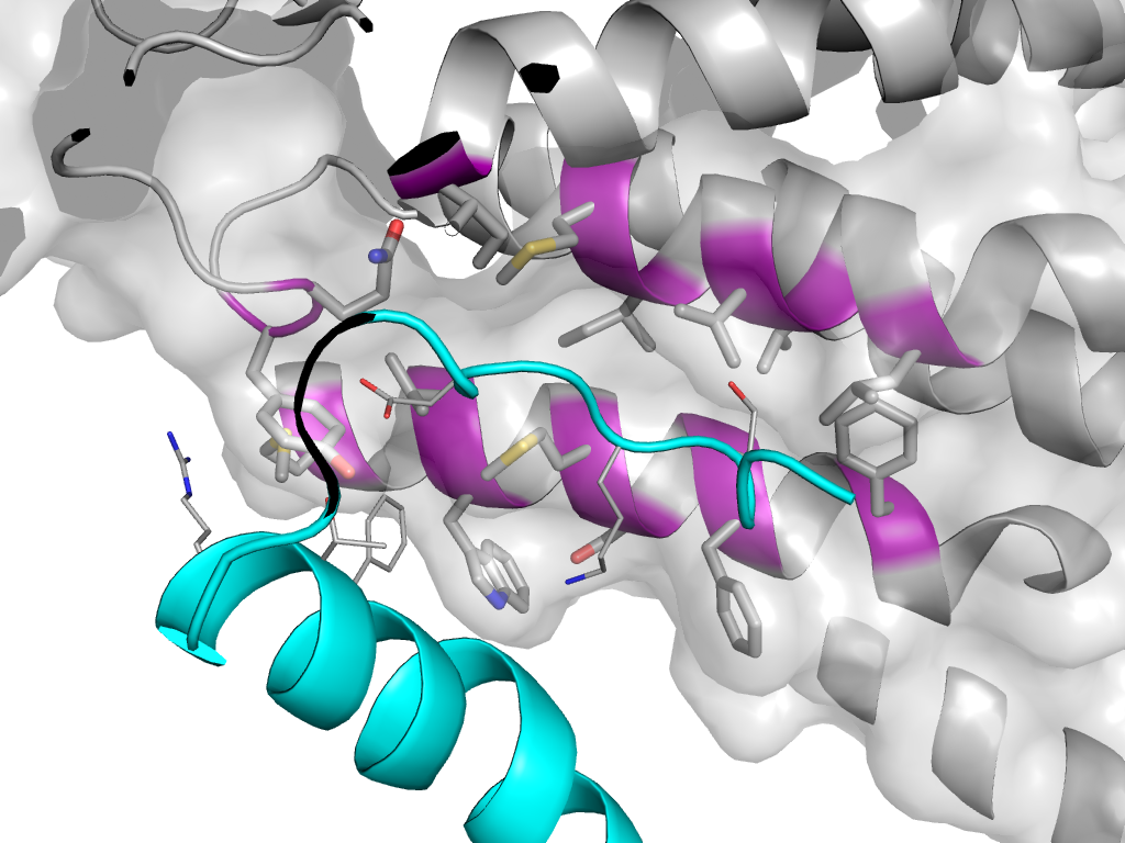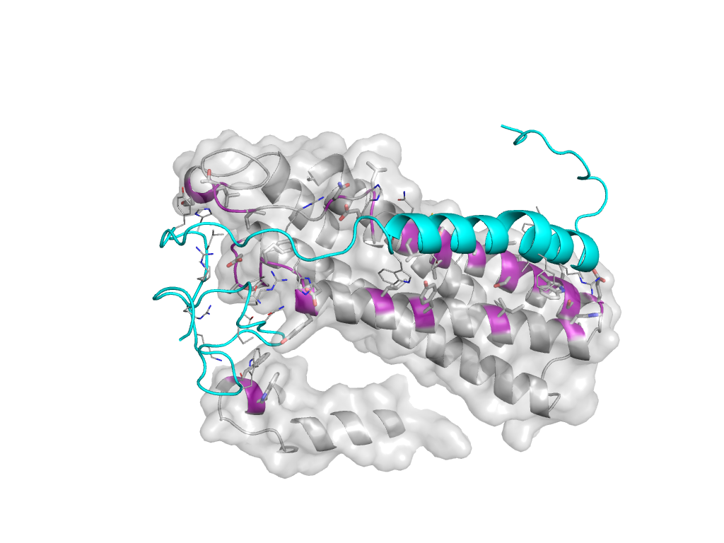 e3ablP1 T:x,y,z->P:X,Y,Z Cytochrome c oxidase subunit III-like Interaction Interface Pymol