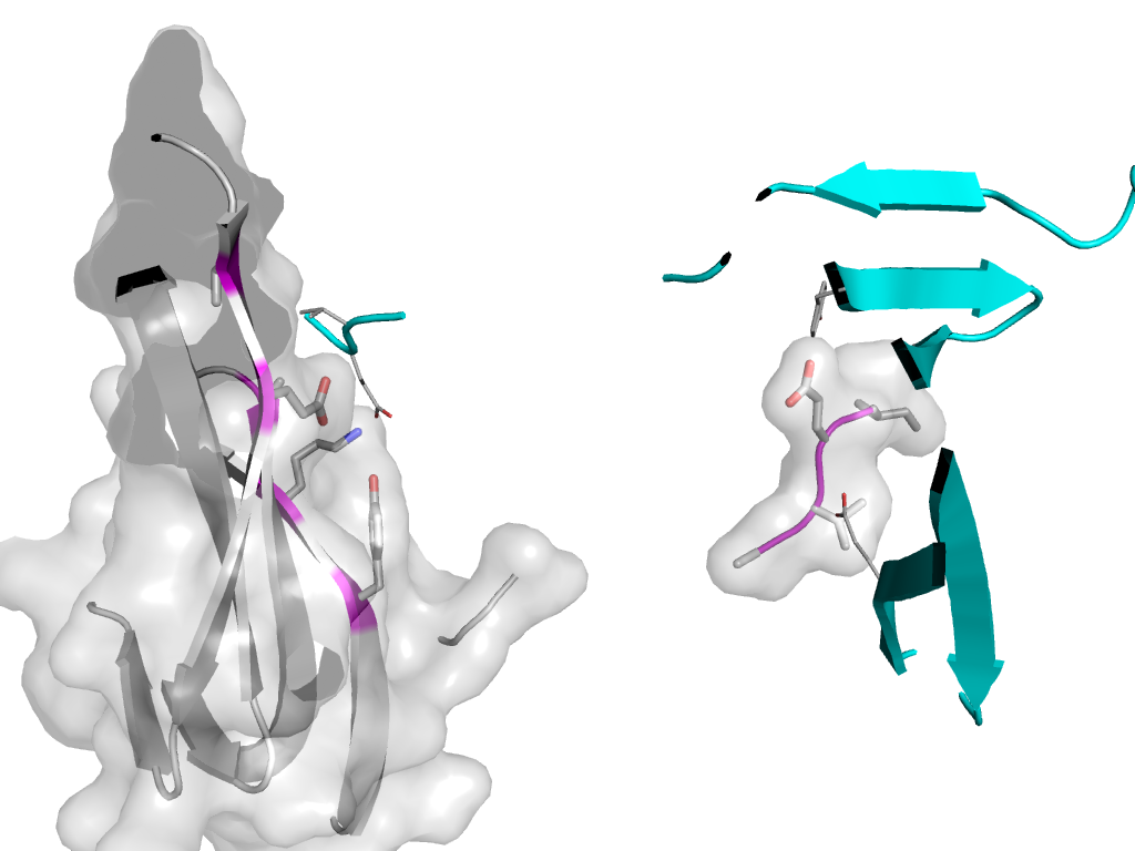 | e3bw1B1 | A:X,Y,Z->B:x,y,z | SH3 | Interaction Interface Pymol |