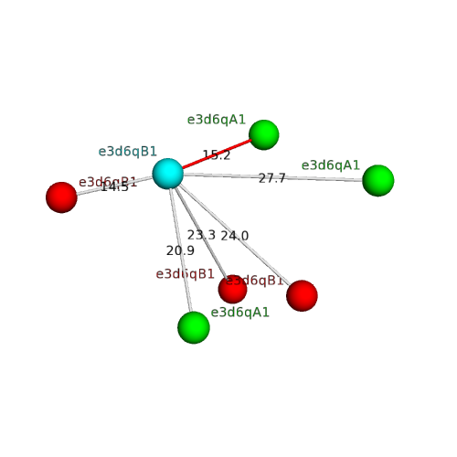 Structural contacts of domain e3d6qB1 of H-group "RNase A-like":