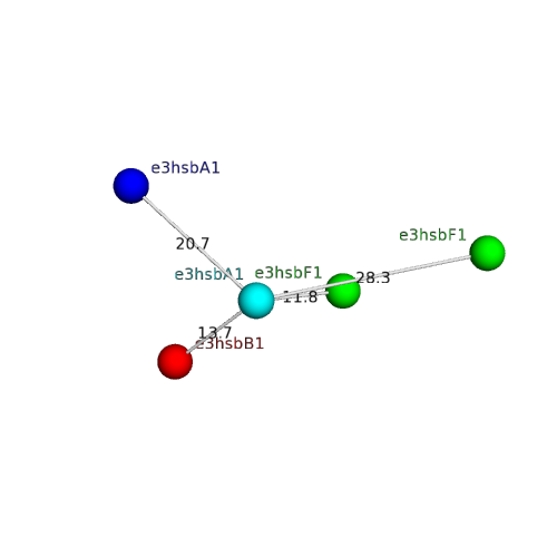 Structural contacts of domain e3hsbA1 of H-group "SH3":