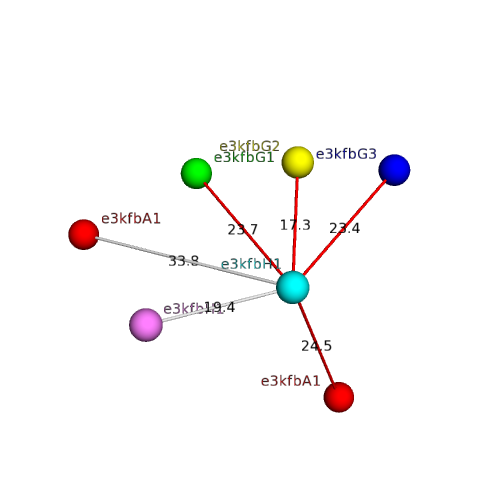 Structural contacts of domain e3kfbH1 of H-group "GroEL equatorial domain-like":
