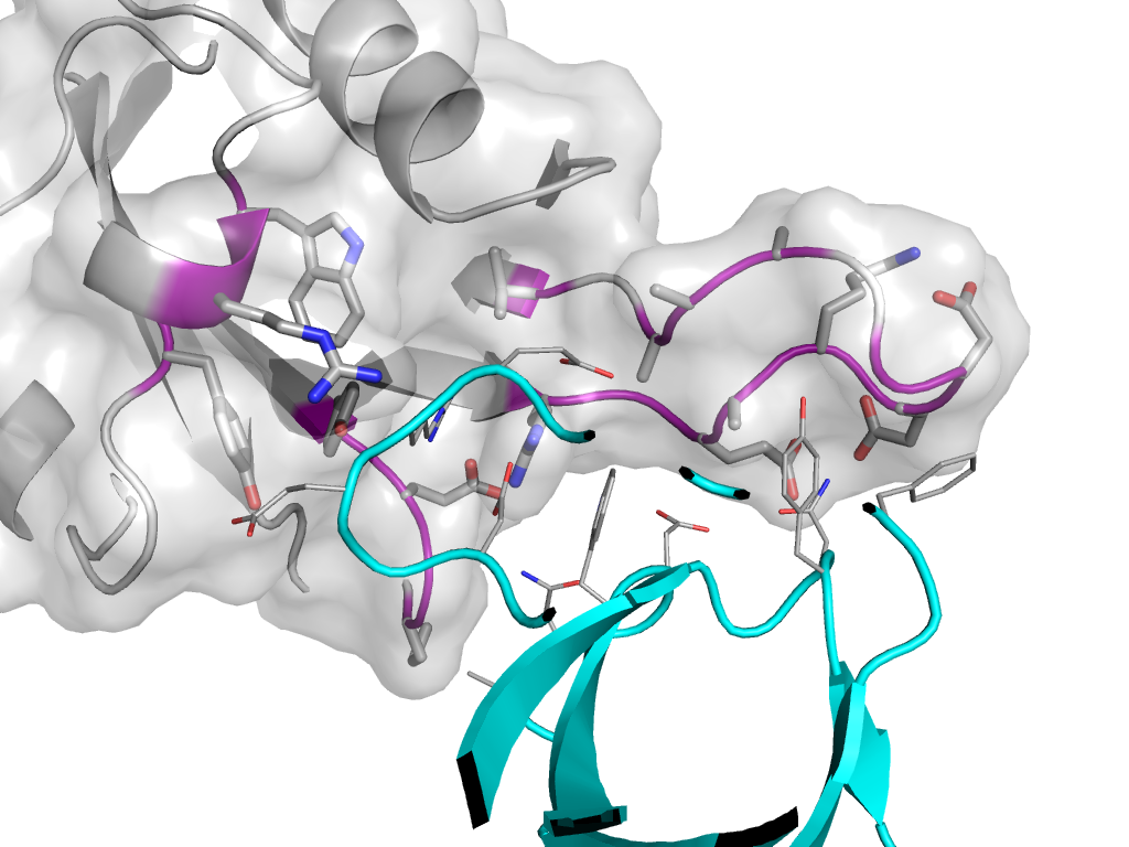 | e3qwyA1 | A:x,y,z->A:-X,Y,-Z-1 | SH3 | Interaction Interface Pymol |