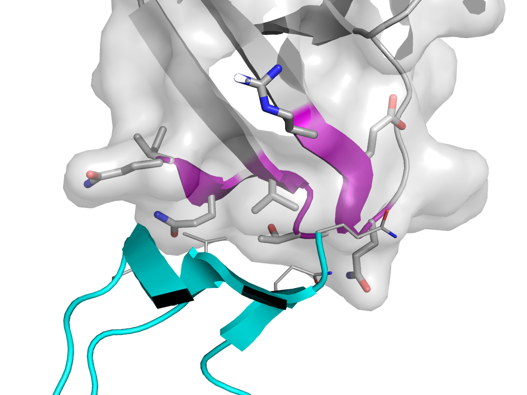 | e3qwyB1 | B:x,y,z->B:-X,Y,-Z-1 | SH3 | Interaction Interface Pymol |