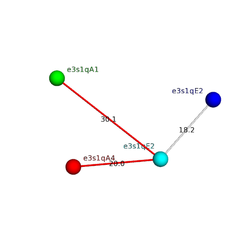 Structural contacts of domain e3s1qE2 of H-group "Eukaryotic RPB5 N-terminal domain":