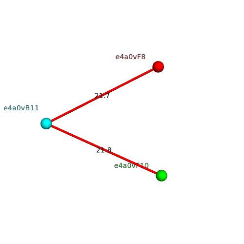 Structural contacts of domain e4a0vB11 of H-group "The "swivelling" beta/beta/alpha domain":
