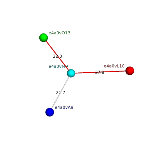 Structural contacts of domain e4a0vM9 of H-group "GroEL equatorial domain-like":