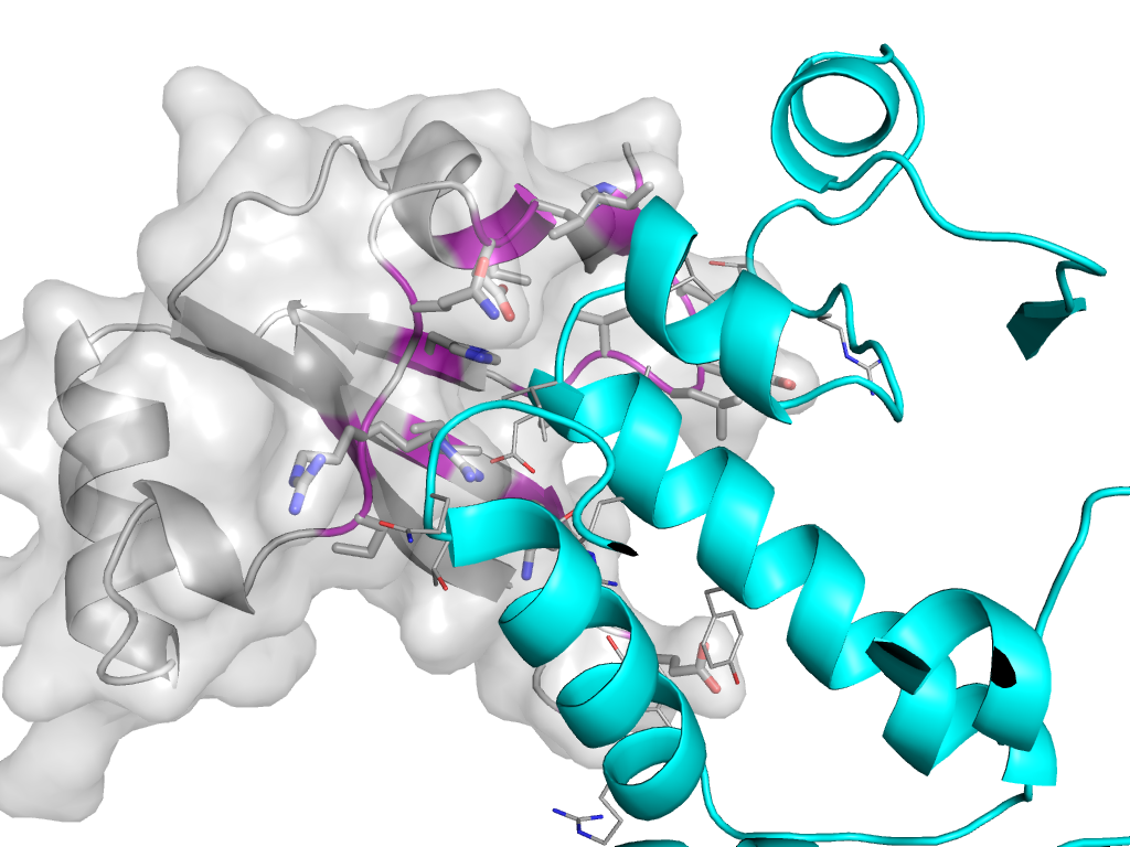 e4a3dE2 A:X,Y,Z->E:x,y,z Eukaryotic RPB5 N-terminal domain Interaction Interface Pymol