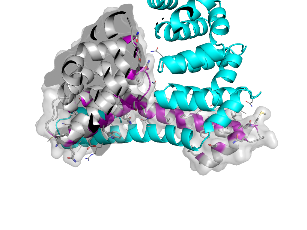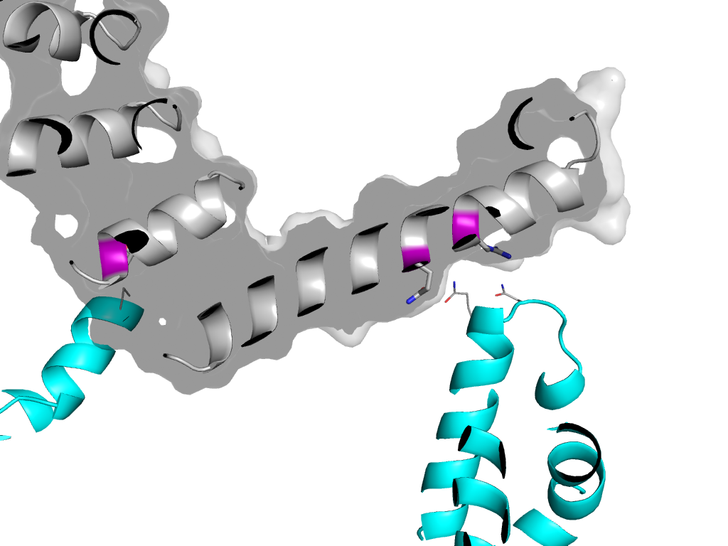 | e4dbaD3 | A:X-1,Y,Z->D:x,y,z | ARM repeat | Interaction Interface Pymol |