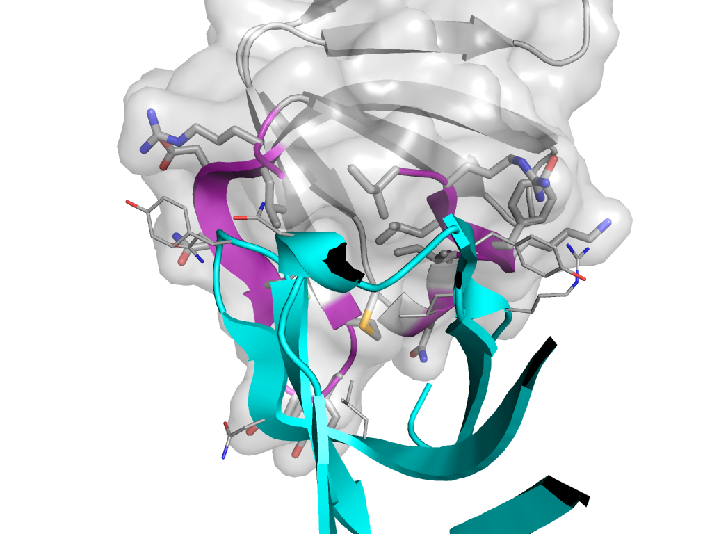 | e4emhK3 | T:x,y,z->K:-X+1/2,Y-1/2,-Z+2 | SH3 | Interaction Interface Pymol |