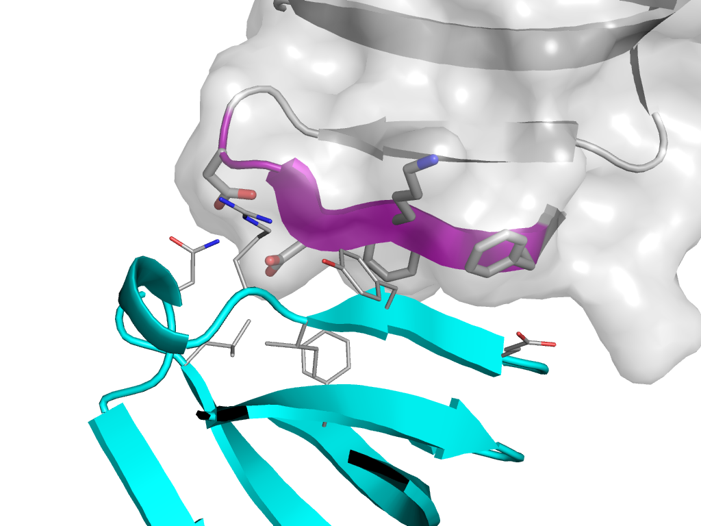 | e4emhT3 | T:x,y,z->T:-X+1,Y,-Z+3 | SH3 | Interaction Interface Pymol |