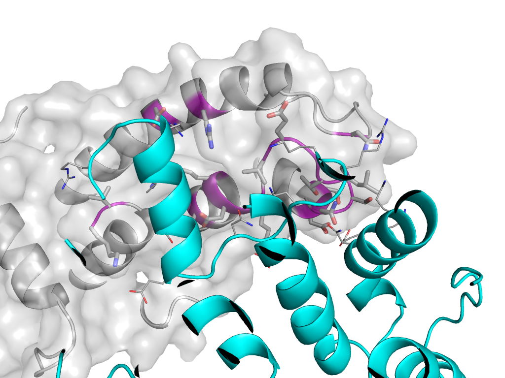 e4f5xF2 H:x,y,z->F:X,Y,Z A virus capsid protein alpha-helical domain Interaction Interface Pymol