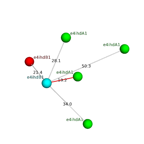 Structural contacts of domain e4ihdB1 of H-group "MocoBD/DmpA-related":