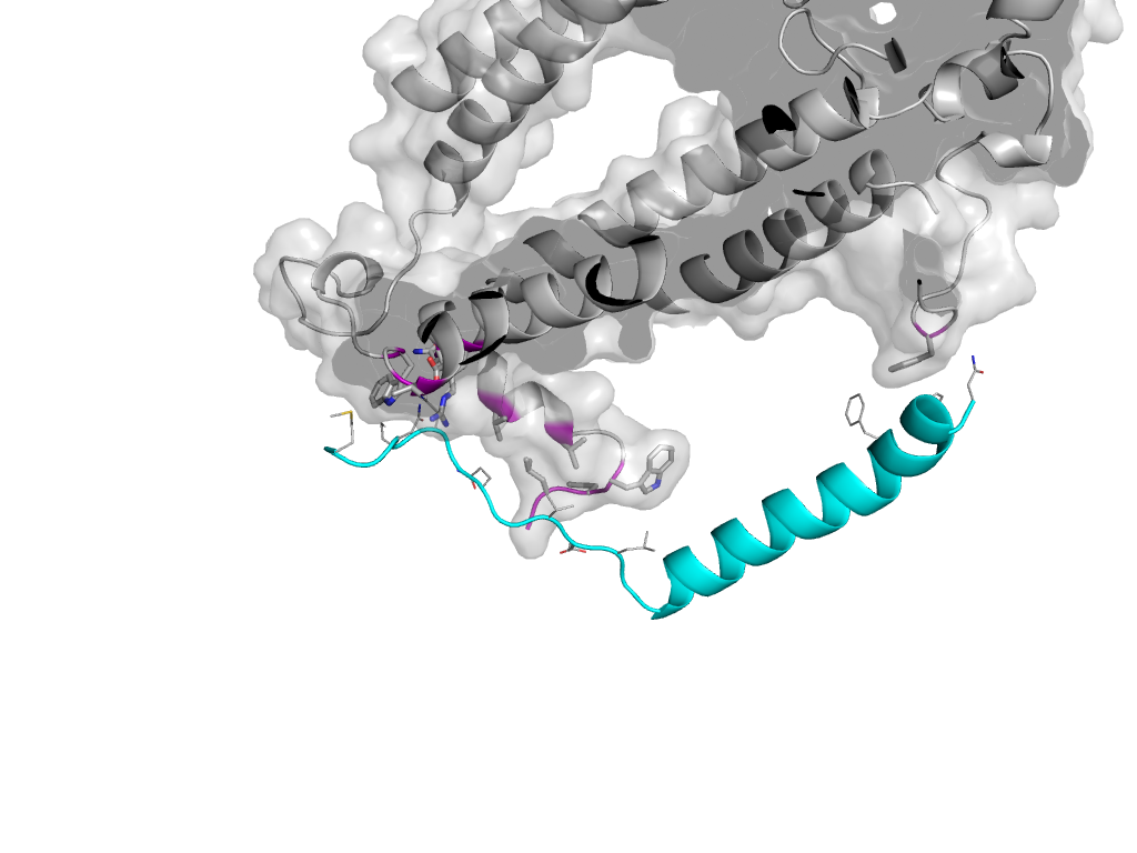 e4pbut1 l:X,Y,Z->t:x,y,z Photosystem II reaction center protein T, PsbT Interaction Interface Pymol